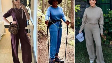 As for what the Felicity actress reaches for instead? “Probably a jacket of some sort,” Russell explains. “Matthew, my guy, always says — I’ll come down wearing something, like, I was obsessed with wearing the same leather jacket over and over for so many years, with these chinos. And he’s like, ‘Oh, Sam Shepard from The Right Stuff again?’ And I’m like, ‘Yeah, yeah.’ ”