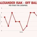 Isak has so far started 10 times for Liverpool and the most defensive contributions he has made in a single game is four – against both West Ham and Sunderland – while he is yet to win more than 50 percent of his duels in any game.